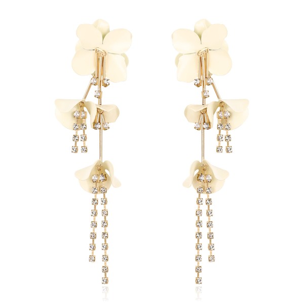 BriLove Crystal Statement Flower Dangle Earrings Unique Chic Long Tassel Enamel Boho Layered Floral Petal Drop Stud for Women Summer Refreshing Seaside Idyllic Holiday Clear Gold-Toned