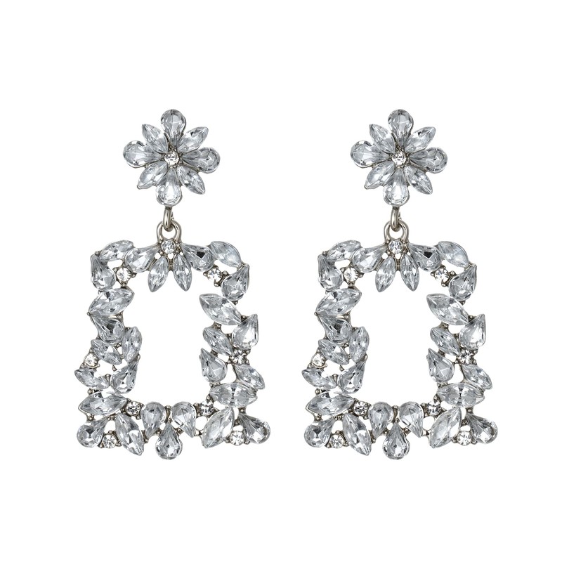 BriLove Statement Drop Earrings Boho Bohemian Style Rhinestone Marquise Rectangle Flower Crystal Geometric Dangle for Women Clear Silver-Tone