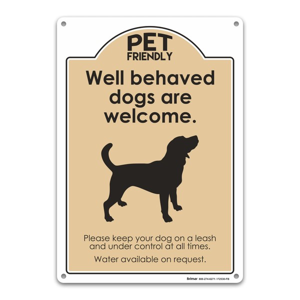 Brimar - 7 x 10" - Well Behaved Dogs Are Welcome Sign - .040″ Rust-Free Aluminum- Clear Message - Convenient Size