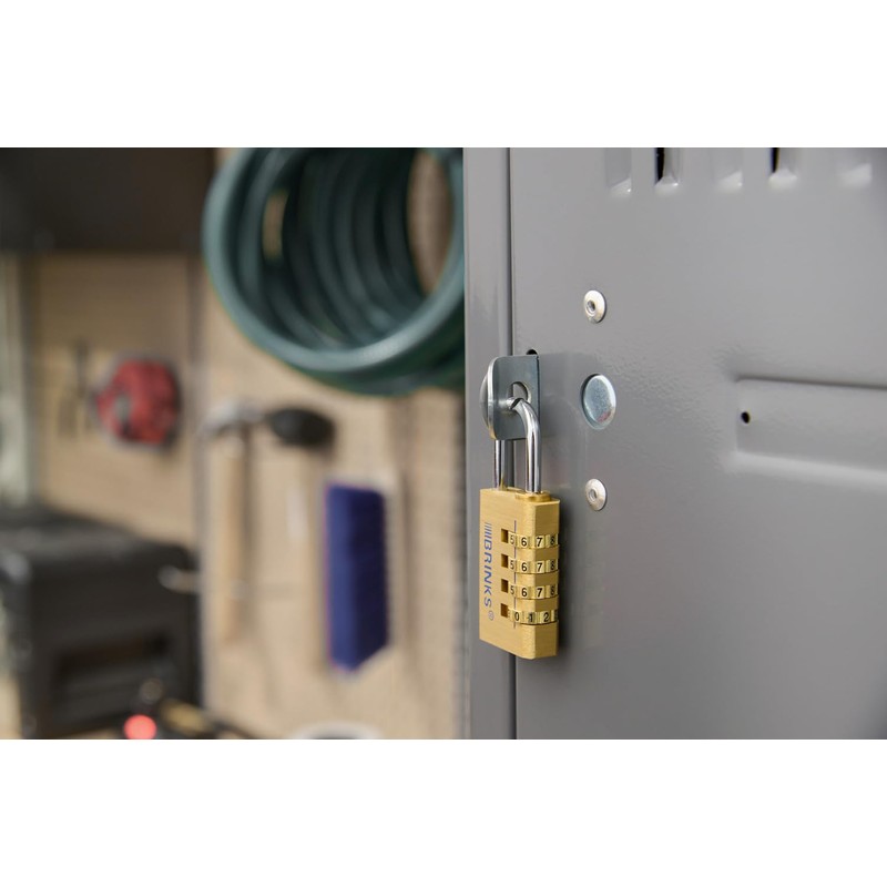- FEATURES: Brink’s 4-Dial Resettable Combination Padlock has a 30mm solid brass body with chrome plated, hardened steel shackle for cut resistance.