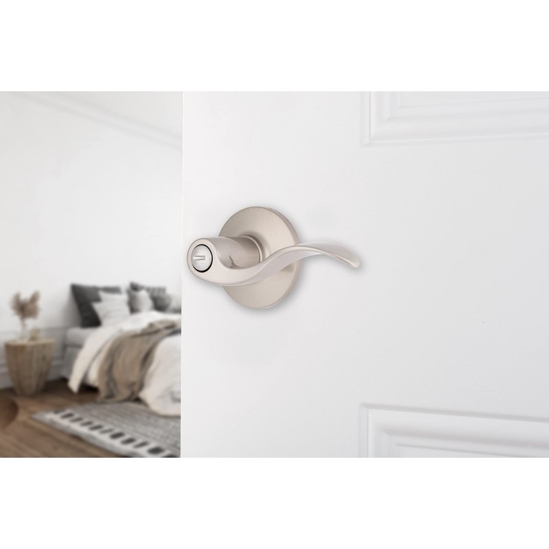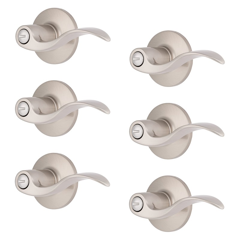 BRINKS – 6-Pack Satin Nickel Transitional Privacy Locking Wave Door Handle – Interior Modern Bed/Bath Lockset Round Wave Door Lever