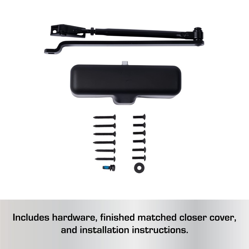 - FEATURES - This heavy duty closer controls the traffic in and out of your space and automatically closes the door after every opening. It controls the closing and latching of your door to eliminate slamming and adds security and safety.