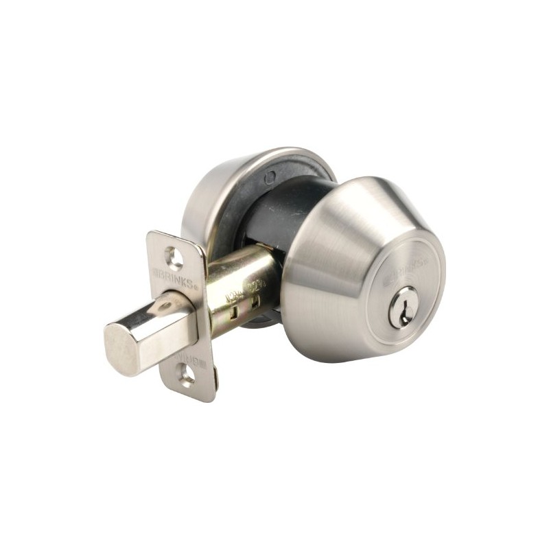 BRINKS. Double Cylinder Keyed Deadbolt Lock, Satin Nickel - Pick, Bump and Drill Resistant and Comes with an Anti-Pry Shield