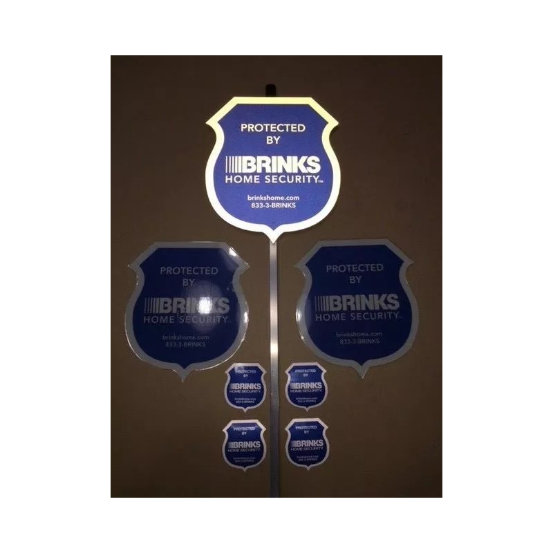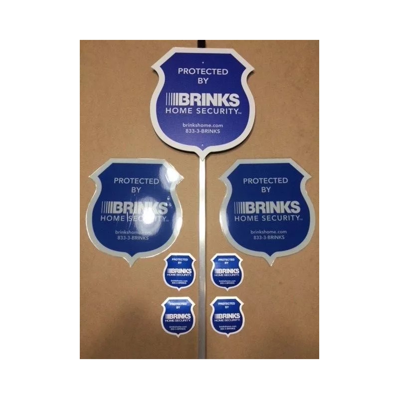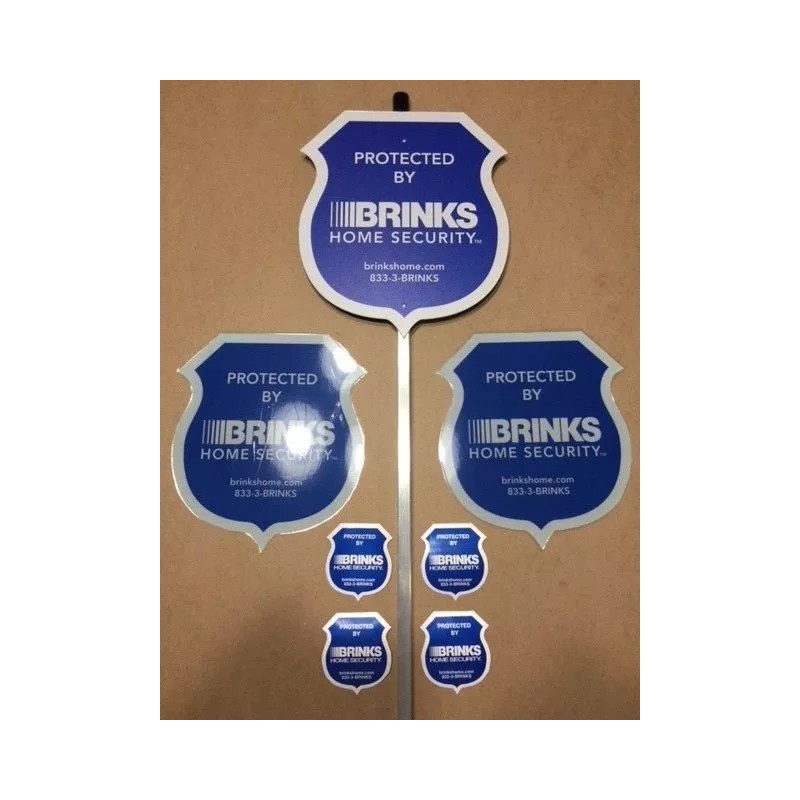 This listing includes (1) New Brinks Security Yard Sign w/ 4 Double sided door/window decals. We will also include at no extra charge, 2 - 14# heavy paper stock Brinks laminated signs, good for door/windows under a covered area indoor or out.