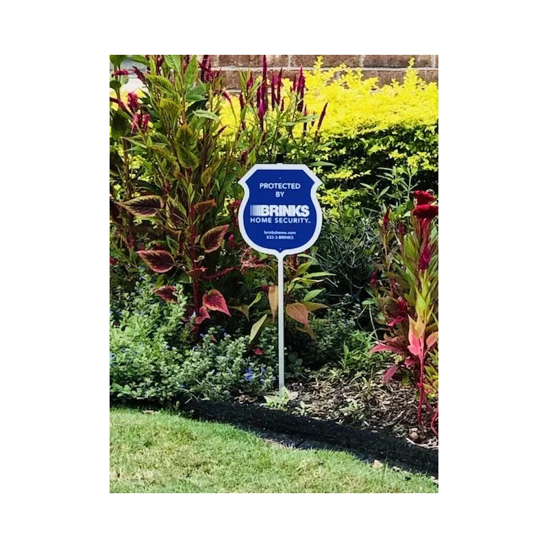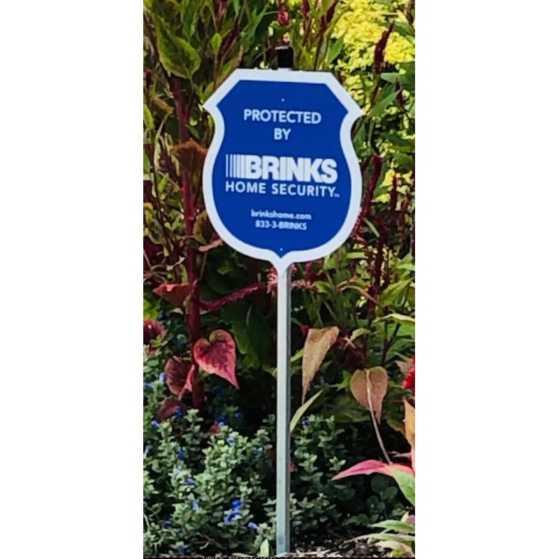 This is THE NEW Brinks sign since they re-entered the home security marketplace. Brinks Home Security had been absent from the home security market business after selling out to ADT in 2009. Brinks home security has re-emerged back into the home security market ever since their 10 year non-compete agreement has expired. All the other the signs that are light grey with blue lettering are prior 2009.
