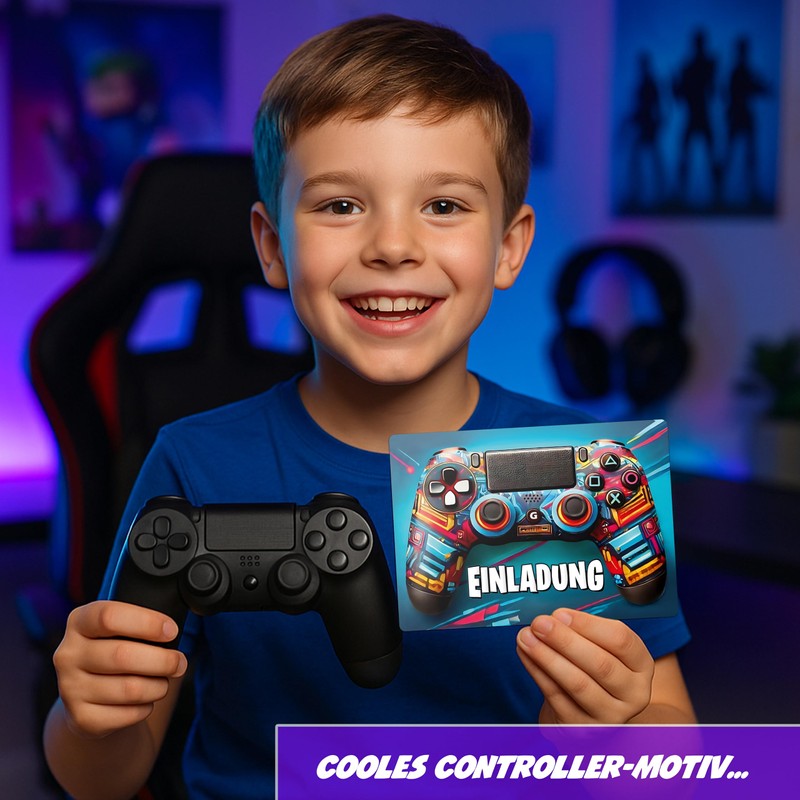 - Cool controller design - the invitation cards for real gamers. The back is also stylishly designed - perfect for a cool gaming party with a wow effect!