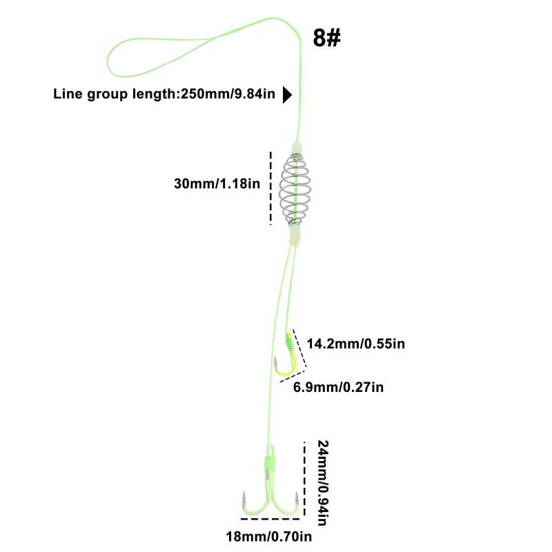 • Spring bait cage hook design: can fix bait, prevent fast falling, hook bait, provide permanent atomization and improve hook rate.
