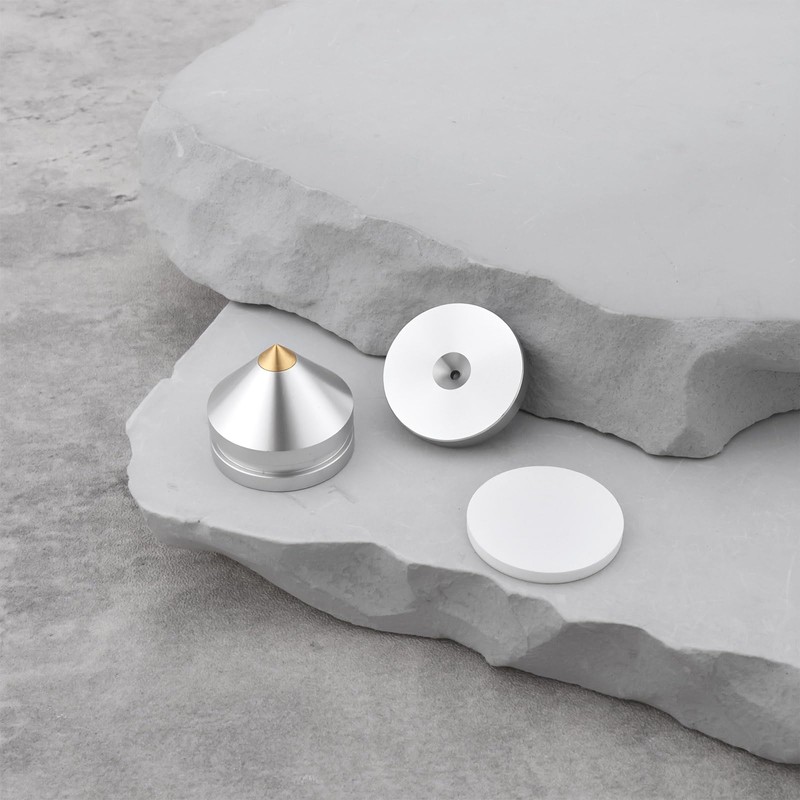 - This conical foot pad made of aluminium alloy is designed for HiFi audio devices. It can absorb and reduce the vibrations generated by the devices during operation, thus ensuring a purer and finer sound output.