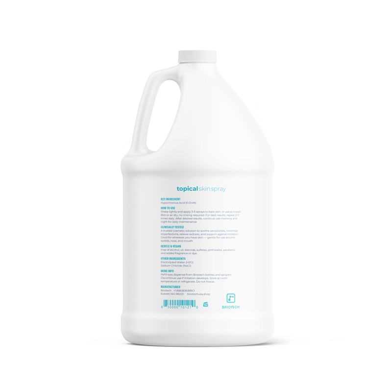 BRIOTECH Topical Skin Spray, Hypochlorous Acid for Sensitive Skin, HOCl Facial Mist, Full Body Support Against Irritation, Calm Redness, Soothe Foot & Scalp, 1 Gallon Refill (1 Pack)