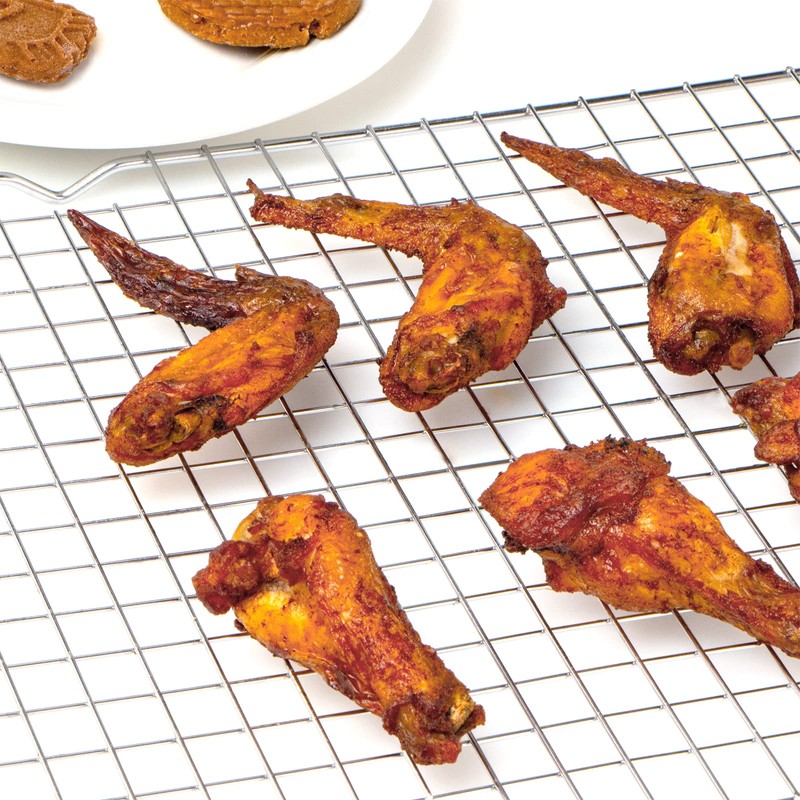 • High temperature resistance, suitable for use in the oven or grill. Put the grill rack on a biscuit board as a drip tray, roast fat out of the food, allow you to make a crispy crust on chicken wings, turkey or bread