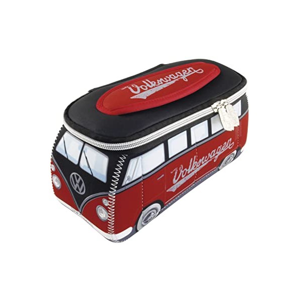 BRISA VW Collection - Volkswagen Neopren Universal-Schmink-Kosmetik-Kultur-Reise-Apotheke-Tasche-Beutel im T1 Bulli Bus Design (Rot & Schwarz/GroÃ)