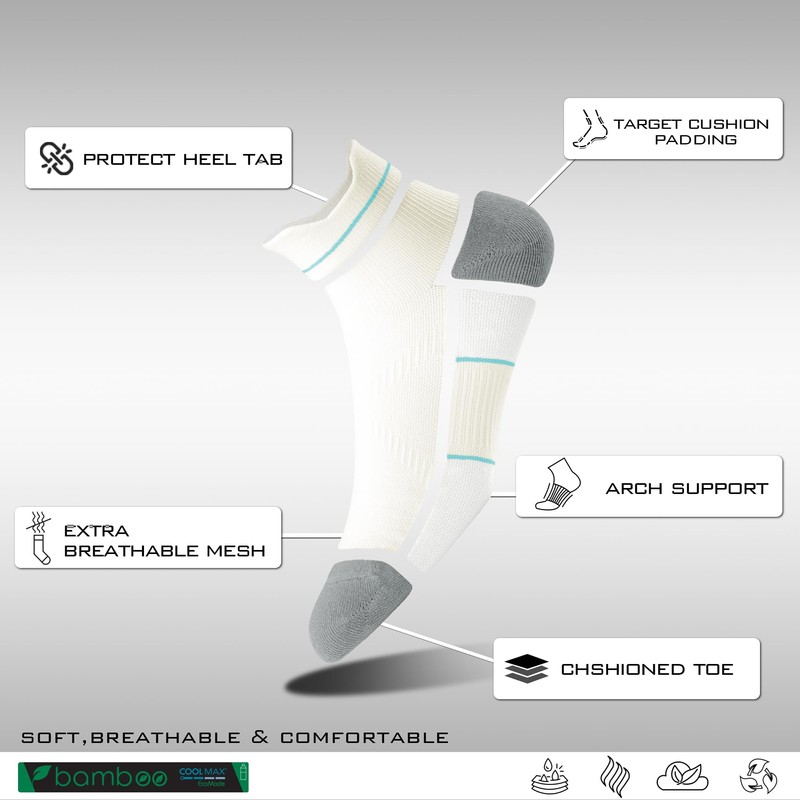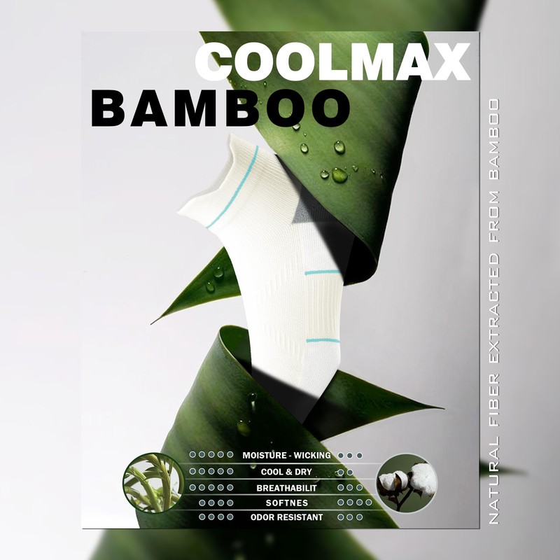 - [PREMIUM PLANTS VISCOSE & COOLMAX FIBER]: These Running socks women are made of high-tech COOLMAX and Plants viscose, which bring comfort and moisture wicking to your feet, keeping your feet dry fit. Good anti-odor socks can make you pleasant.