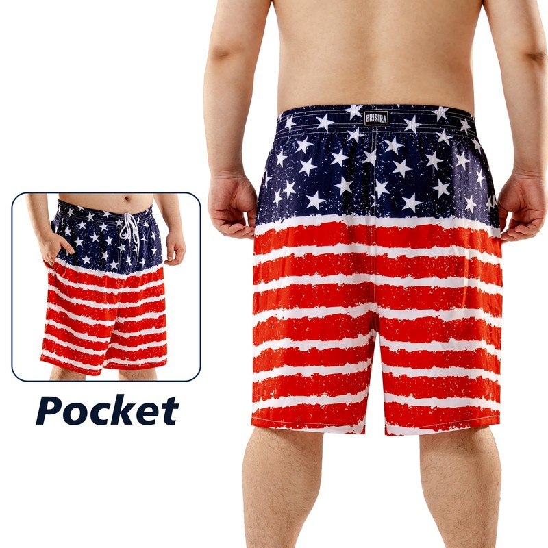 - [Fashion Hawaiian Style]: The swim suit design adopts the most popular fashion elements such as flamingos,America flag, pineapples, dinosaur, tropical, black and blue.It's the perfect summer gifts for your guys.