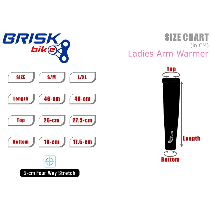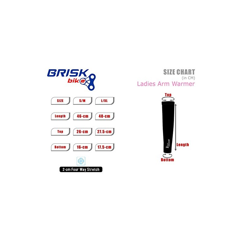 - Brisk Bike Cycling Arm Warmers is designed especially for the rider’s needs. Made from prime quality Brushed Roubaix polyester this arm cover is extremely lightweight powered by Instant-dry Nano Fabric which has the ability to wick away the moisture and keep the arm, elbow, and wrist warmer in the most extreme cold conditions.