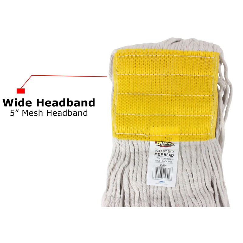 - Job Well Done - Get all you always wanted from a premium quality mop head. 4 ply cotton and 5 inch wide mesh headband provide super absorbency, easy removal of stubborn dirt spots and quick drying for maximum efficiency