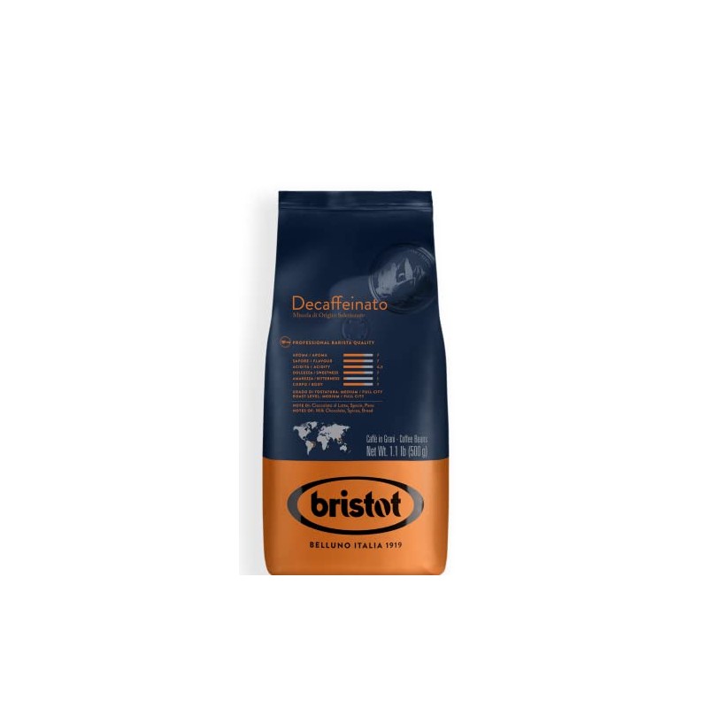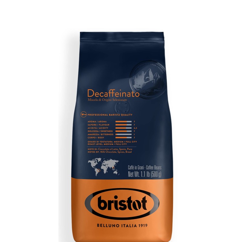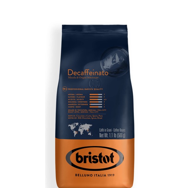 Bristot Decaf Italian Coffee Beans | Italian Espresso Beans Whole | Medium Roast | 1.1 lb/500g