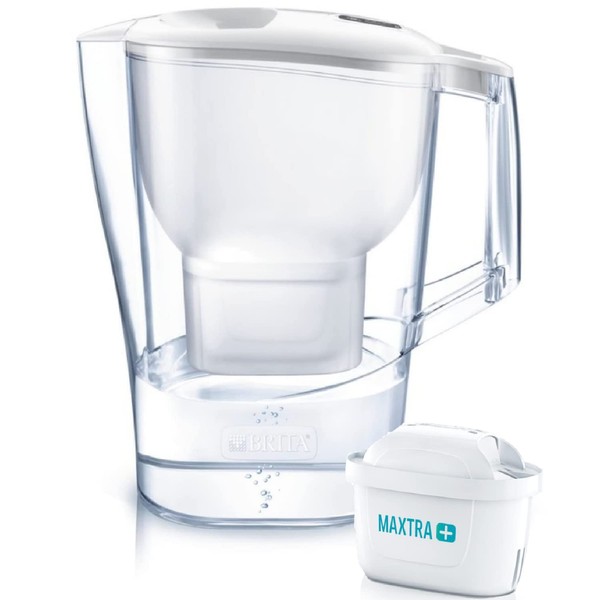 Brita Aluna XL Water Filter Pitcher, White, Filtered Water Capacity 0.5 Gallons (1.75 L), Total Capacity 0.9 Gallons (3.5 L), Includes 1 Maxtra+ Cartridge