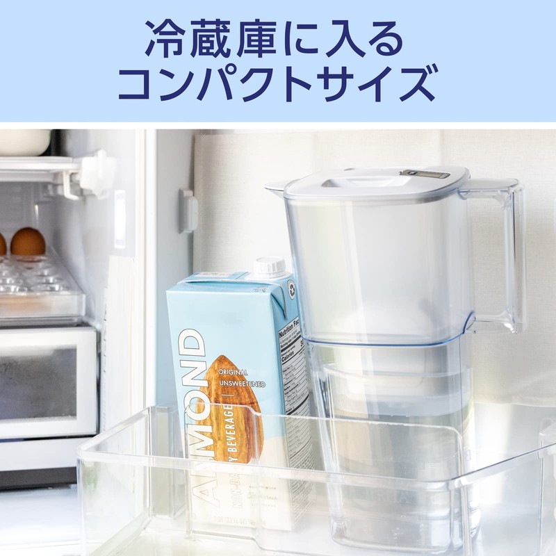 - [Compact Pot Type Water Filter Requirement] Filtration Water Capacity x 3.5 gal (1.15 L), Total Capacity 0.6 gal (2.2 L) It measures 8.0 x 11.2 x 4.3 inches (20.2 x 28.4 x 11 cm) and is small enough to store in the refrigerator. In addition, the LCD memo on the lid tells you when to replace the cartridge, so you can enjoy delicious water at any time