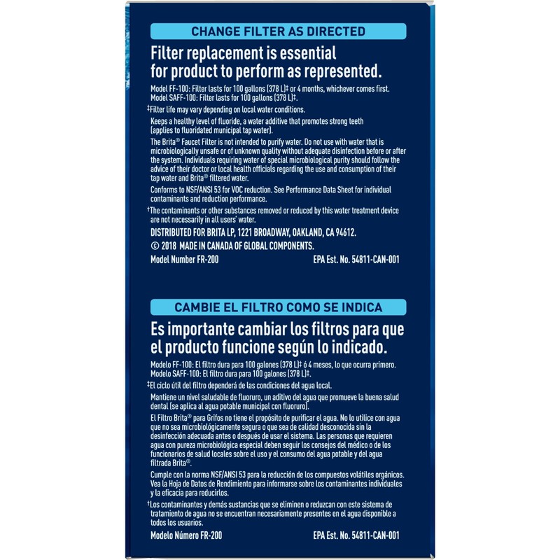 Brita On Tap Faucet Water Filter System Filters cut the odor and impurities found in some tap waters to deliver great-tasting water. These filters are BPA-free and are designed to last for up to four months or 100 gallons. The handy filter indicator lets you know that the filter is working and reminds you when a filter needs replacement. One filter can replace up to 750 standard 16. 9 oz. plastic water bottles, reducing waste and cost. Reduce 99% lead, chlorine (taste and odor) and asbestos contaminants* and get great-tasting drinking water every time you turn on the faucet. Brita On Tap Faucet Water Filter Systems fit standard faucets only. These units do not fit pull-out or spray style faucets. Get great taste, less waste and more savings from Brita.