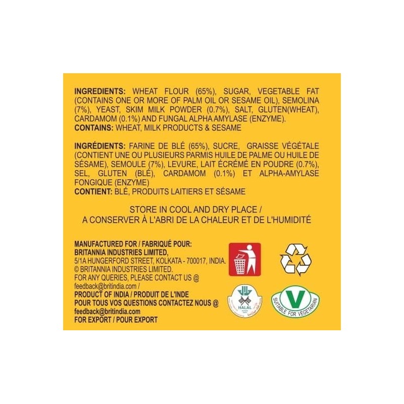 - Britannia Rusk contains Zero % Transfat. Baked to perfection and enriched with elaichi (cardamom). Britannia Toasts will satisfy each of your family’s personal tastes. Britannia has created a line of toasts with the ideal combination of lightness and crispiness.