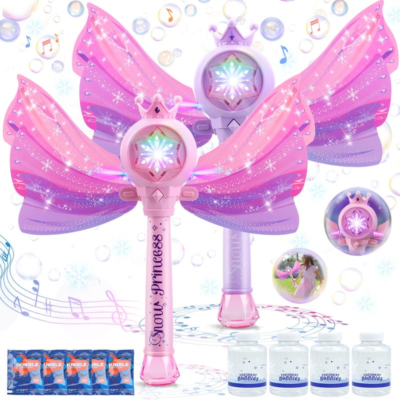 - Delightful Princess Wand Set: Make playtime magical with our Princess Bubble Wand set, featuring two charming wands with removable wings for double the fairy-tale fun