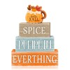 Pumpkin Spice Fall Wooden Tiered Tray Decor – Celebrate the cozy vibes of autumn with this pumpkin spice-themed wooden book stack block sign! Featuring warm fall tones, cinnamon sticks, and festive phrases like “Spice,” “Pumpkin,” and “Everything,” this sign captures the essence of the season. A perfect accent for tiered trays, coffee bars, kitchen islands, or Thanksgiving gatherings. Crafted from sturdy wood with a lightly weathered look, it’s great for fall lovers, farmhouse fans, and harvest home style.