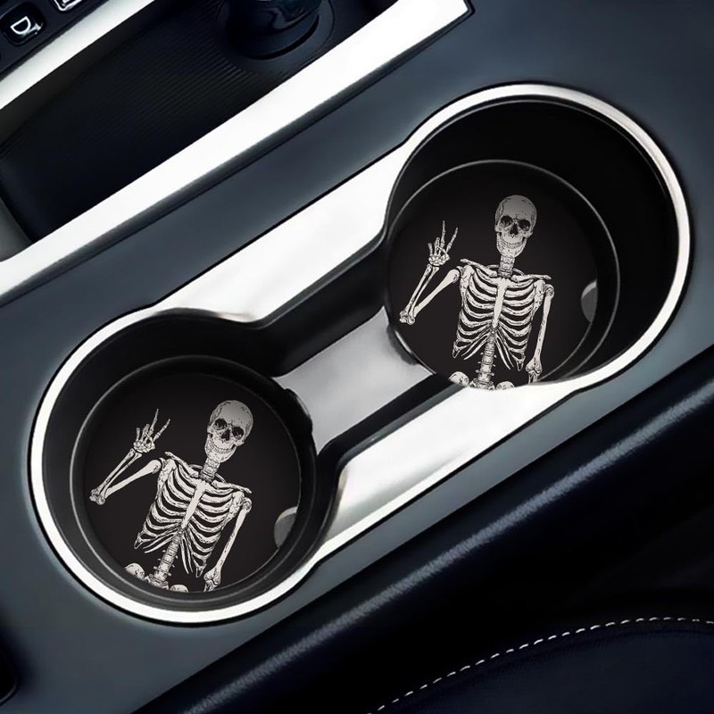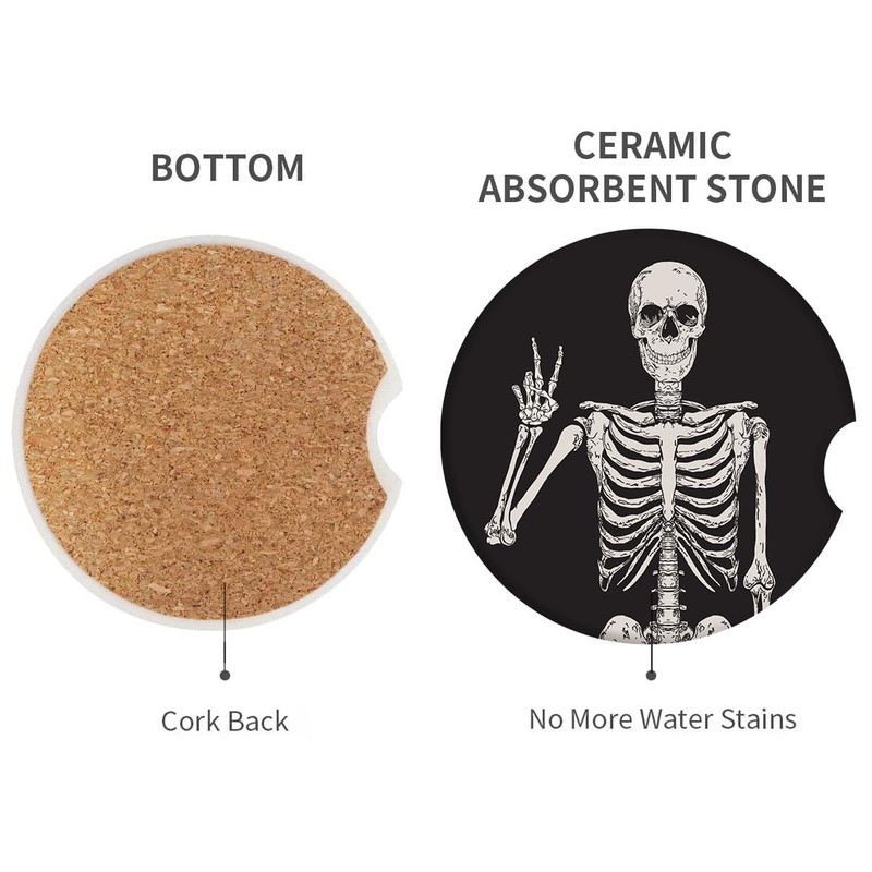 Britimes Absorbent Car Coasters 2 Pack for Cup Holders, 2.56" Ceramic Stone & Non-Scratch Cork Base Drink Coasters Human Skeleton1