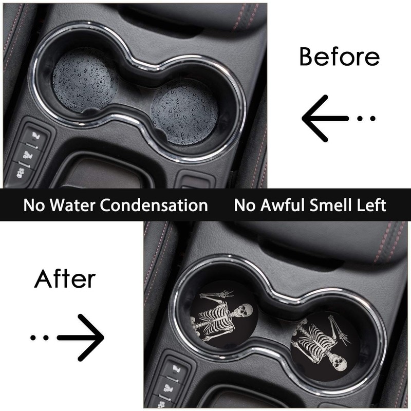 - Absorbent Ceramic Stone: Our coasters are made using a special ceramic manufacturing process that easily absorbs water droplets from the outside of the cup. When hot or cold beverages, drinks, or milk liquids spill from mugs or cups, the coaster will absorb all the moisture to keep your car cup holder dry and clean.