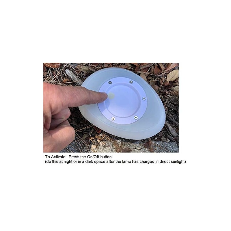 * 6.25" x 5" x 1.5" in size (each lamp) * Value packed in a set of 3 lamps * 0.1W output; Internal NiMH battery * Fully waterproof design * Turn on automatically at dusk - expect about 8 to 10 hours of performance (more in summer, less in fall/winter) * Lamps charge during the day and turn on automatically at dusk * New for 2021 - lamps have REPLACEABLE AA NiMH batteries * Color temperature: cool white (5500K) * Adds a little atmosphere and elegance to outdoor spaces * **Important Note: These lamps must be turned ON to work. To activate, press the on/off button on the underside of the lamp (see image - do this at night or in a very dark space after the lamp has charged in daylight)**