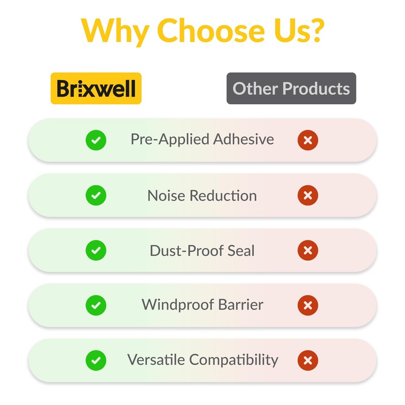 - ADHESIVE BACKING: Equipped with a self-adhesive layer that bonds to clean frame surfaces, this weatherstrip installs without fasteners or track systems, simplifying setup for both retrofits and first-time applications.