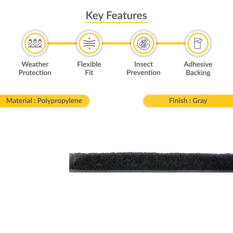 - PILE HEIGHT: Features a 0.200" pile height that compresses when the door or window is closed, helping reduce external air, dust, and moisture from entering through frame edges, supporting basic insulation and indoor comfort control.