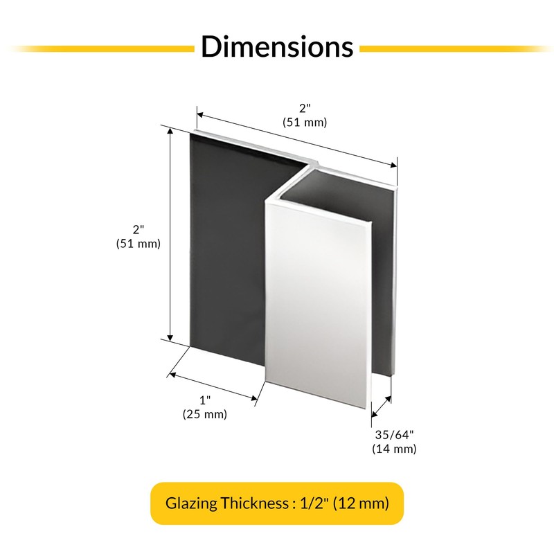- Measures 2" in height, 2" in width, and 35/64" in depth to fit standard frameless glass installations.