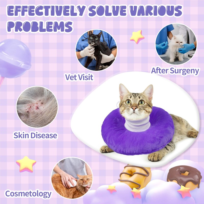 - Soft Material: The cat recovery collars are made of polyester and PP cotton, which is lightweight, skin friendly and soft to the touch, It’s durable and very comfortable to wear it, the soft cat cone collar make cats eat, sleep and play more comfortably and happily, it also can be used as a cozy and lightweight built-in pillow for cats to rest