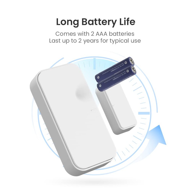 - 【Low Battery Warning】The Door Sensor needs 2pcs AAA Batteries (included). When the battery level is low, you will receive a message via the App. No need to worry about running out of batteries anymore.