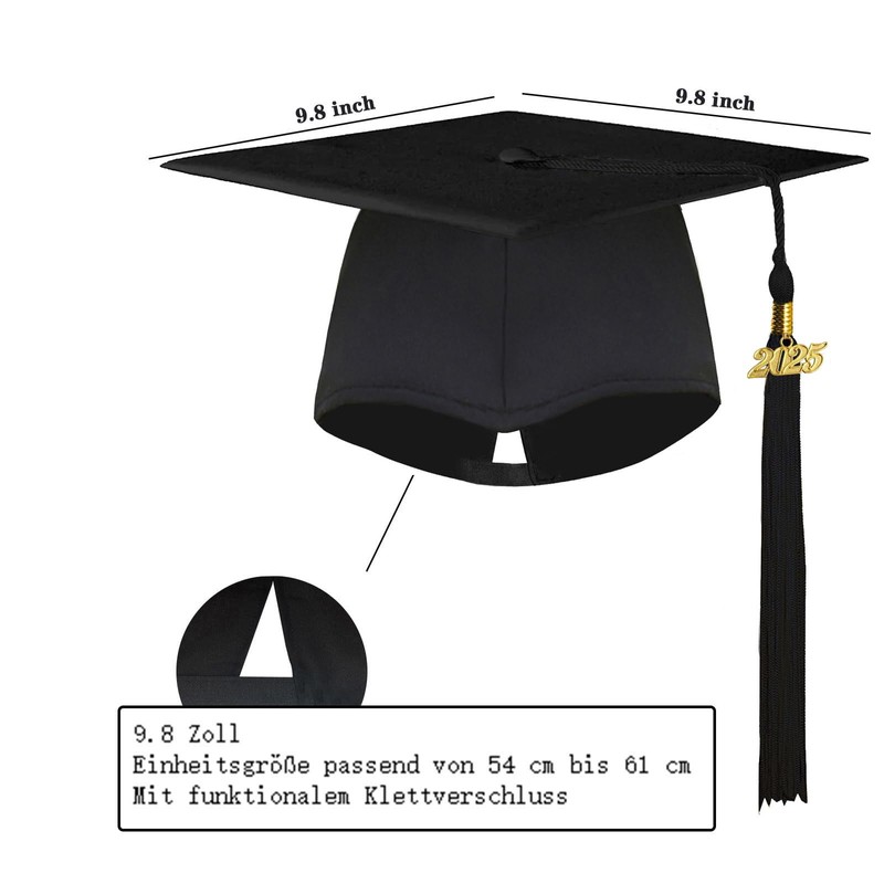 - Material: 100% polyester. Mortarboard. 28 x 28 cm. The cap is decorated with a uniform tassel (pompom) and has a square headboard, according to a long tradition.