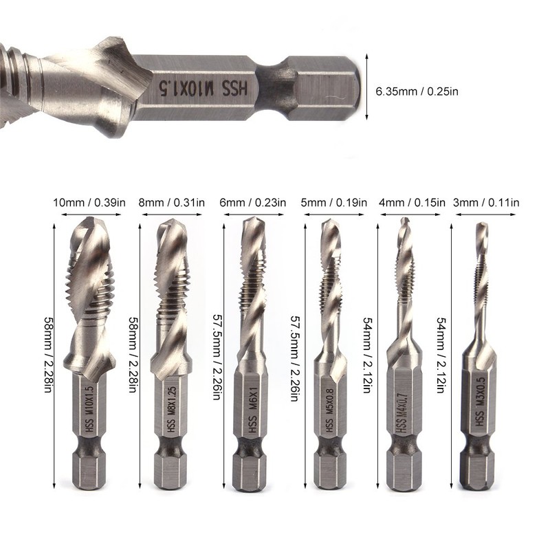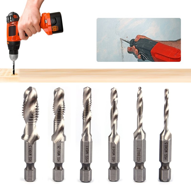 Brocas Y Machuelos Hss, 6 Piezas Juego De Brocas Combinadas De Taladro Sae Fresa Hexagonal Avellanada De Desbarbado Taladro Y Machuelo De Acero De Alta Velocidad Con FuncióN De Perforació