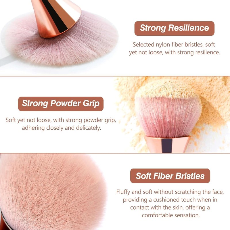 - Resultado impecable: el cepillo grande para polvo proporciona resultados suaves y de alta definición con cerdas curvas para ayudar a mezclar polvos sin problemas, crear un maquillaje exquisito.