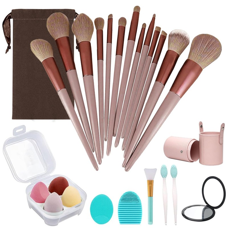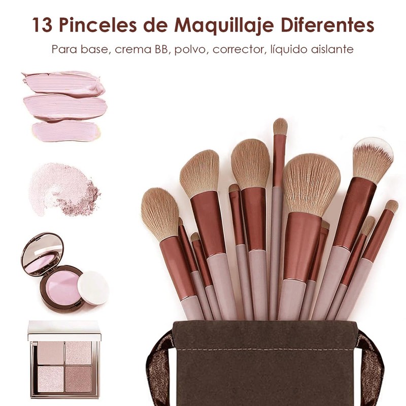 Brochas de Maquillaje Profesional 13 Piezas, Cepillo de cerdas sintéticas de alta calidad que Incluye huevos de esponja, cepillo facial, cepillo labial, espejo y cubo de viaje