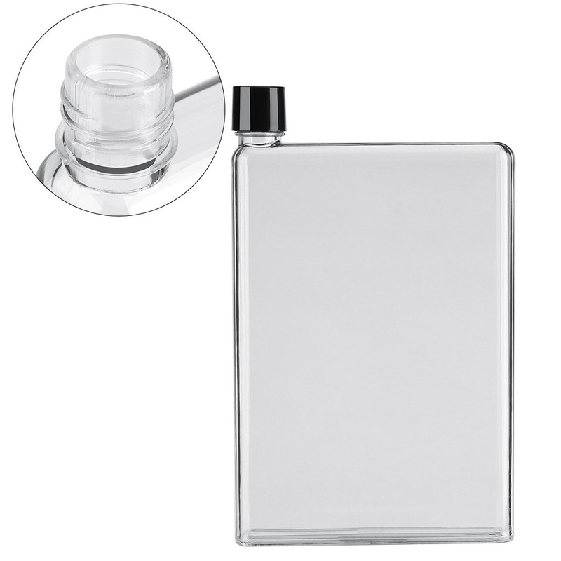 Brand new and high quality leak-proof transparent water bottle in A5 format, 750 ml. It is made of high quality AS plastic and is durable, reusable and safe to use. The mouth opening is small but good for sipping. Flat square design, like a book, lightweight, slim and durable. Easy to carry. Space-saving. It is very suitable for your school bag, backpacks, briefcase, handbag, etc. A great gift for your families and friends.