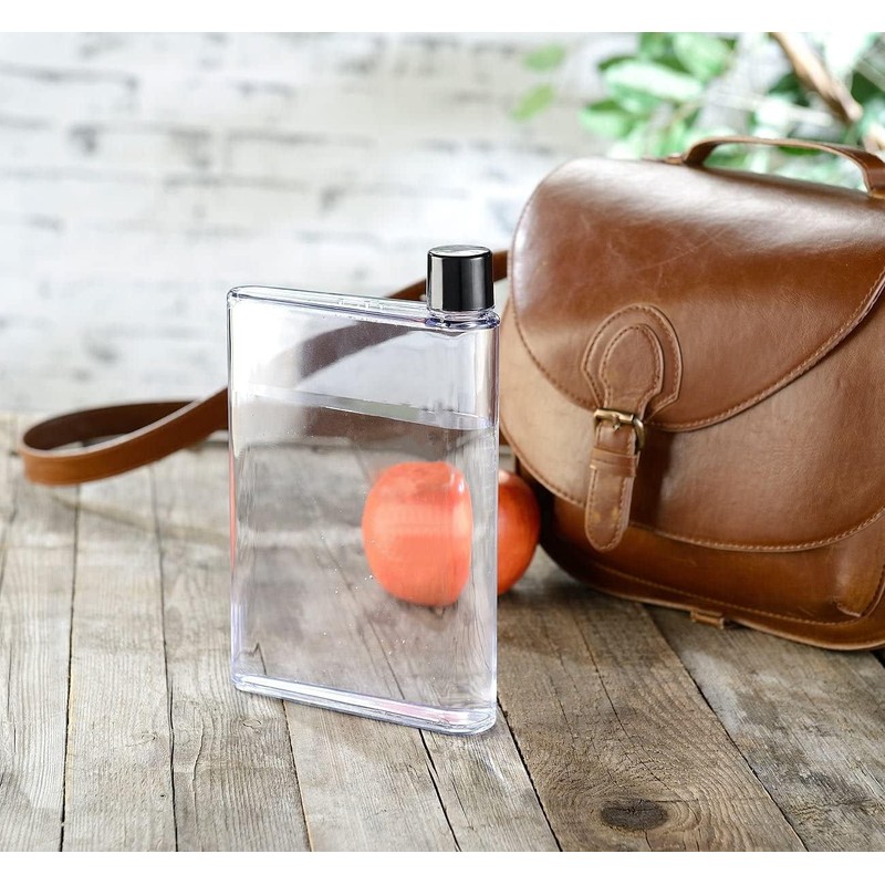 - Clear water bottle: high-quality, leak-proof, clear, flat water bottle, A5 size (210 x 148 x 30 mm), 750 ml.