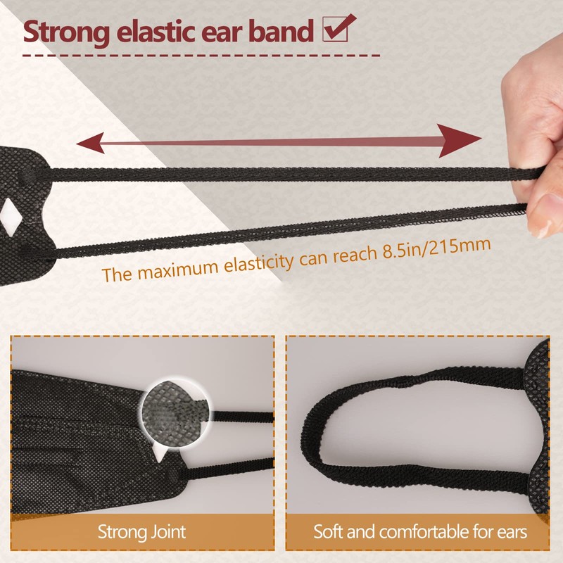 - 【Elastic Ear Loops 】6mm high elastic ear loops put less pressure on ears and face, which can avoid the discomfort caused by prolonged wear.