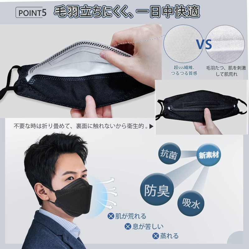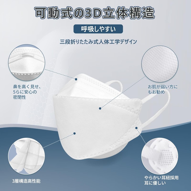 - 【立体構造·超快適防護】3D立体構造設計で、口元とマスクの間に一定の隙間を作ることにより、息がしやすくなります。高性能マスクは通気性に優れた素材を使用しているため、防御効果を保証する上、呼吸もしやすくなります。