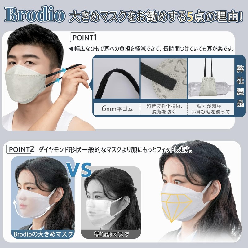[Brodio] マスク 立体 超大きめ 不織布 三層構造 個包装マスク バイカラー メンズ ダイヤモンド形状 柔らかい素材 肌にやさしい 使い捨て 3dマスク 大きめ 息がしやすい 耳が痛くならない 通気性 カラーマスク 大きめサイズ