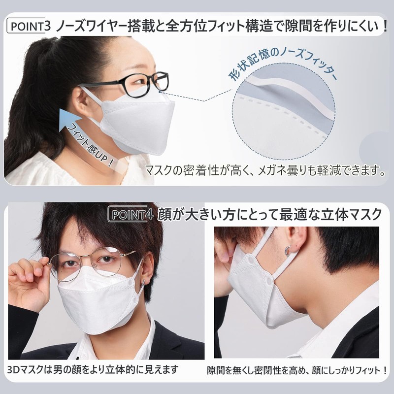 - 【3Dマスク·バイカラーマスク】待望の3Dマスク新登場!!「洋服に合わせやすいバイカラー」「95%以上の顔型に似合う」「男女兼用フリーサイズ」自分に合う3dマスクを探しづらい方へ。3つのPoint。【Point①】95%以上の顔型に。鼻筋を高く見せるし、頬から顎まで優しくカバーできる、改良版の3d FITマスク。【Point②】よりよいフィット感。フリーサイズで市販の女性用3Dマスクより、きつくなく顔をしっかり隠せる。【Point③】日常に彩りを。ビジネスにも日常コーディにも合わせやすいバイカラーマスクは、ファッションアイテムとして楽しみます。さらに、耳ひももトレンドのカラーで、マスクをかけると顔を美しく見せてくれますよ。