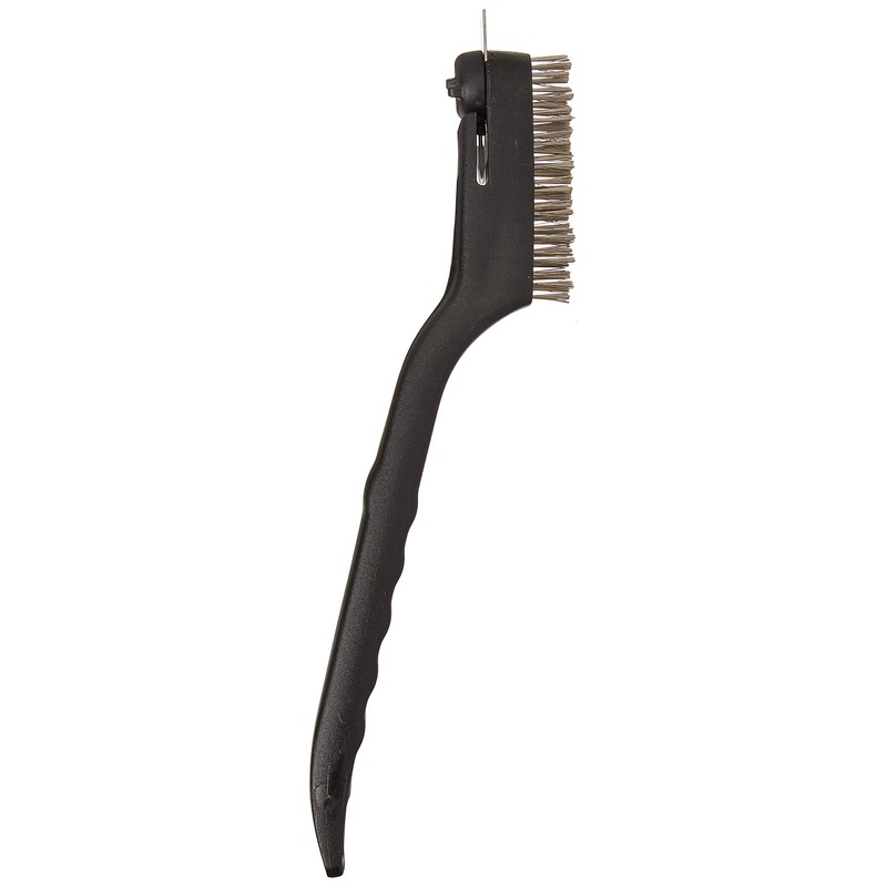 • Fine detail brush also has a needle tip to clean out any clogged burner tube holes - essential on rotisserie burner grills