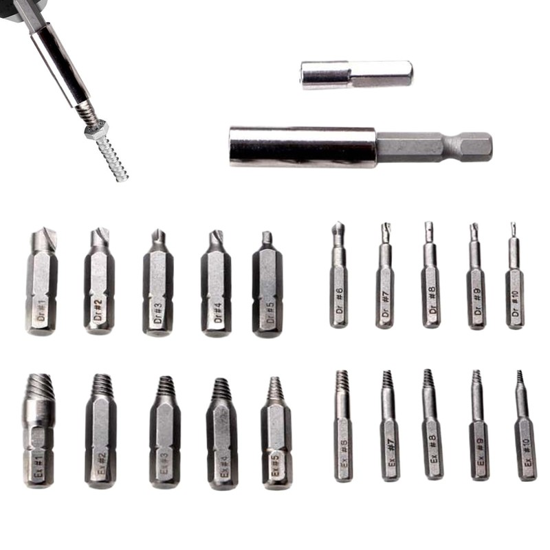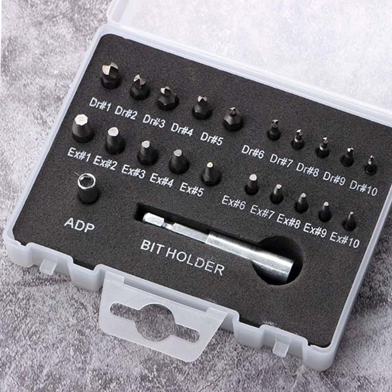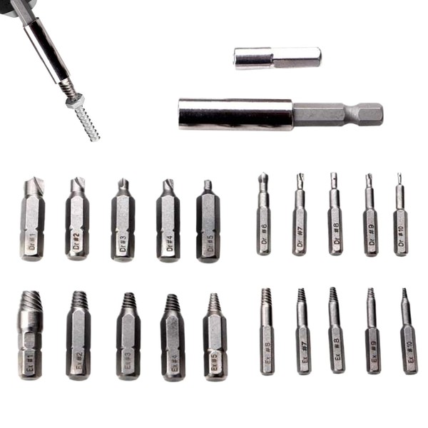 Broken Screw Extractor Set - Broken Bolt Extractor Kit 22-Piece | Nut Remover Drill Bit for Beginners Professionals Garage Workshop Home Improvement