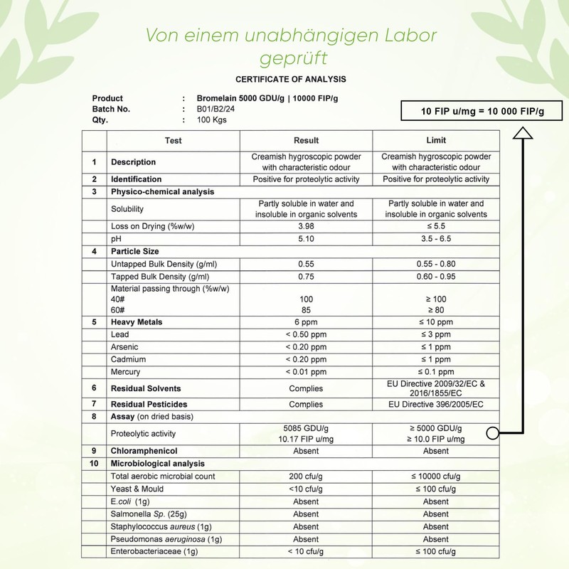 - Vegan without additives - This Biotary product is 100% plant-based. It is completely allergen-free, as well as free flavours, gluten free, lactose free, soy lecithin free, aspartame free, GMO-free. Thanks to the vegetable capsule cases, the Bromelain capsules are also ideal for vegans.