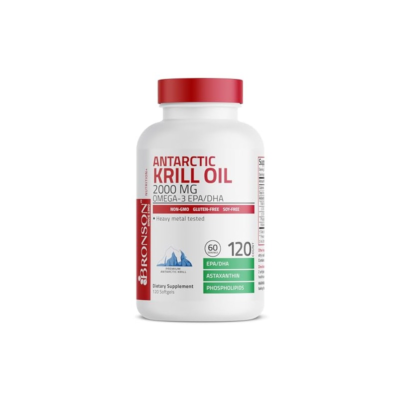 • Acerca de este artículo Extra Strength Premium Krill: el aceite de krill antártico Bronson 2000 mg se cosecha constantemente de las aguas frías frescas de la Antártica. Nuestro aceite de krill antártico proporciona 2000 mg de krill premium por porción (2 cápsulas blandas). Ácidos grasos esenciales omega