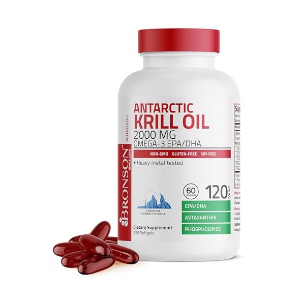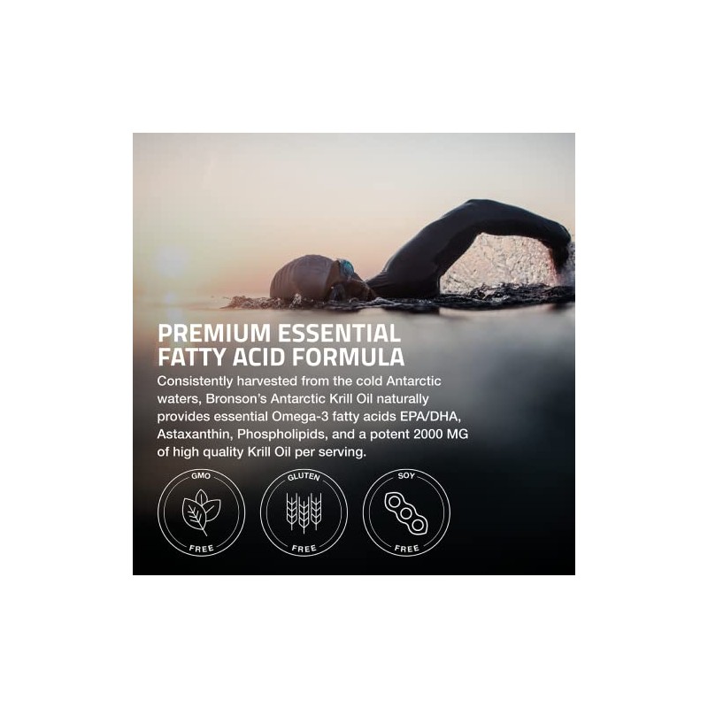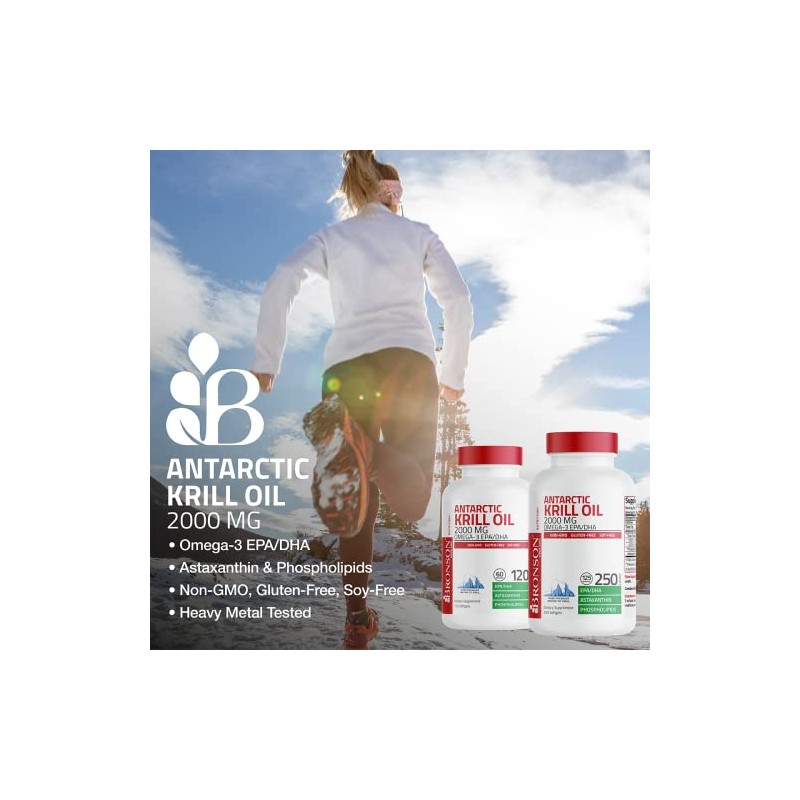 - Acerca de este artículo Extra Strength Premium Krill: el aceite de krill antártico Bronson 2000 mg se cosecha constantemente de las aguas frías frescas de la Antártica. Nuestro aceite de krill antártico proporciona 2000 mg de krill premium por porción (2 cápsulas blandas). Ácidos grasos esenciales omega
