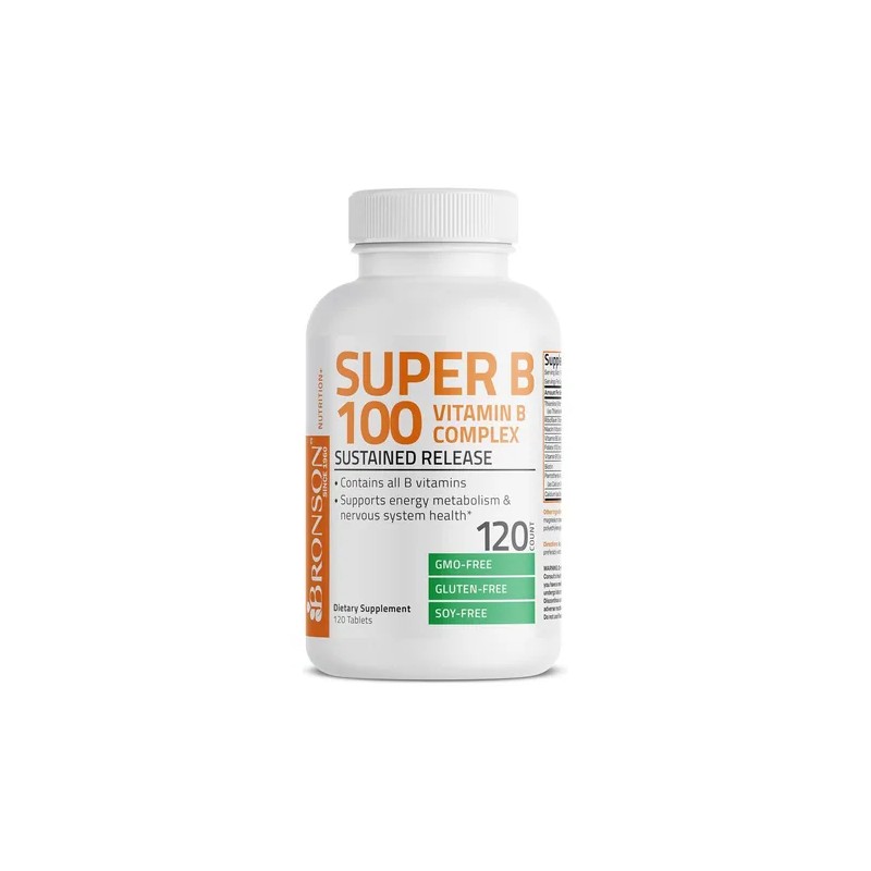 Bronson Super B 100 Vitamin B Complex proporciona todas las vitaminas B en tabletas de liberación sostenida, que se liberan lentamente durante 6 a 8 horas para ofrecer un equilibrio constante de vitaminas B que ayudan a mantener niveles de energía saludables.*